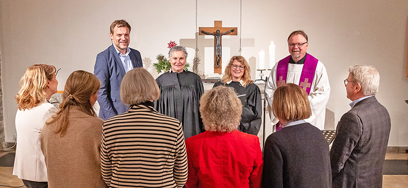 Essen, 08.12.2025. In einem Ökumenischen Gottesdienst in der Marktkirche haben die Evangelische Kirche in Essen und der Caritasverband für die Stadt Essen acht neue Ehrenamtliche für den Dienst bei der Telefonseelsorge beauftragt. Die Predigt hielt Assessorin Monika Kindsgrab, stellvertretende Superintendentin des Kirchenkreises Essen, außerdem wirkten Caritasdirektor Prof. Dr. Björn Enno Hermans, Domvikar Bernd Wolharn und die Leiterin der Ökumenischen Telefonseelsorge Essen, Pfarrerin Susanne Abel, an der Feier mit. Der Gottesdienst stand unter dem biblischen Motto „Alles hat seine Zeit und jede Erfahrung hat ihren Augenblick“ (Prediger 3, Vers 1).