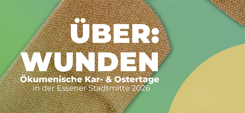 „Über:wunden“ sind die ökumenischen Kar- und Ostertage überschrieben, die die Citykirchenarbeit der Evangelischen Kirche in Essen und die Cityseelsorge „grüßgott“ am Essener Dom in der Innenstadt veranstalten.